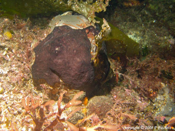 Black ascidian encrusting unknown object