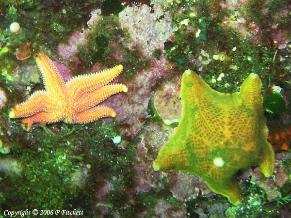 Three-and-three Sea Star (possibly) (left) with Cushion star (right)